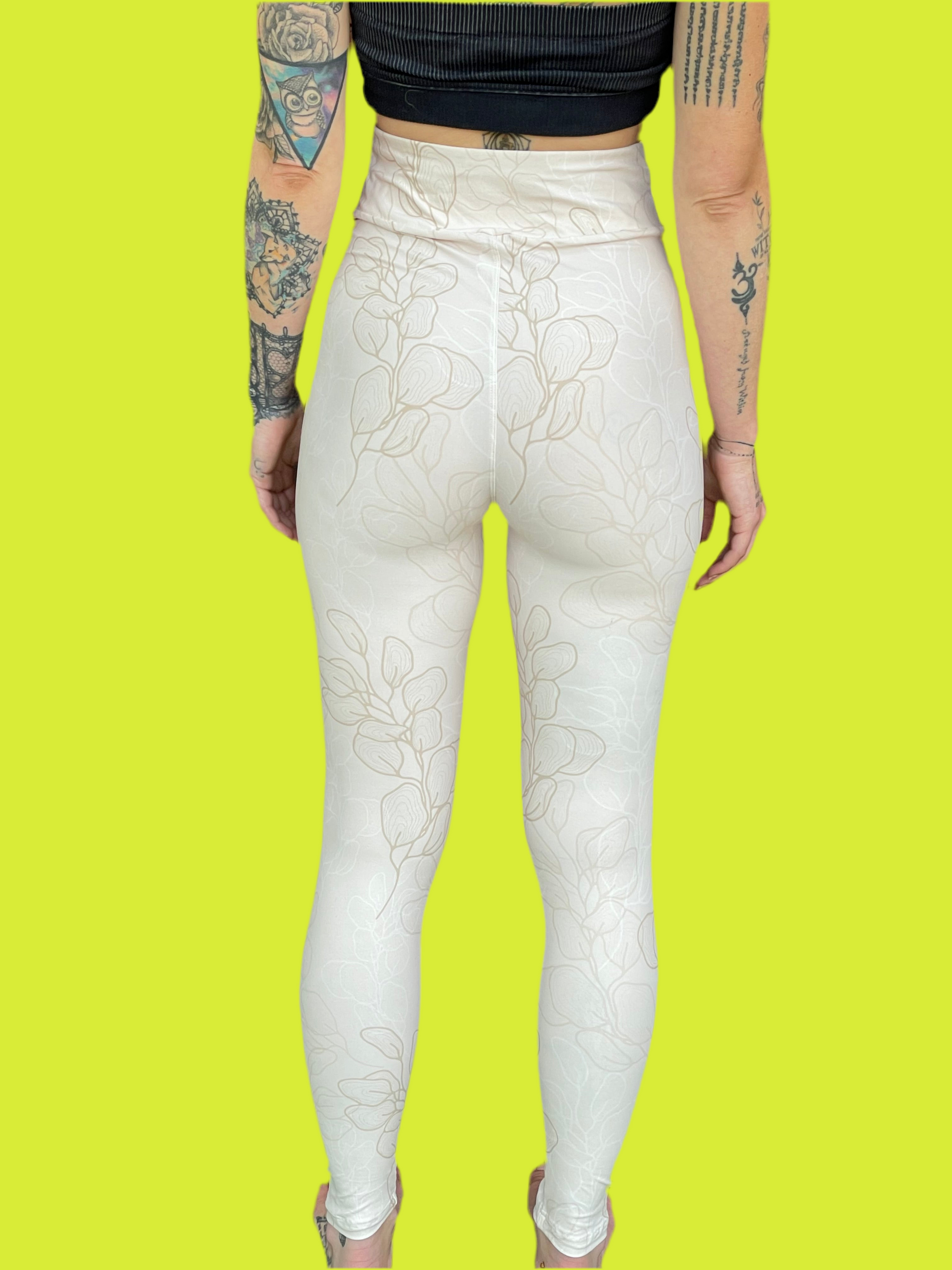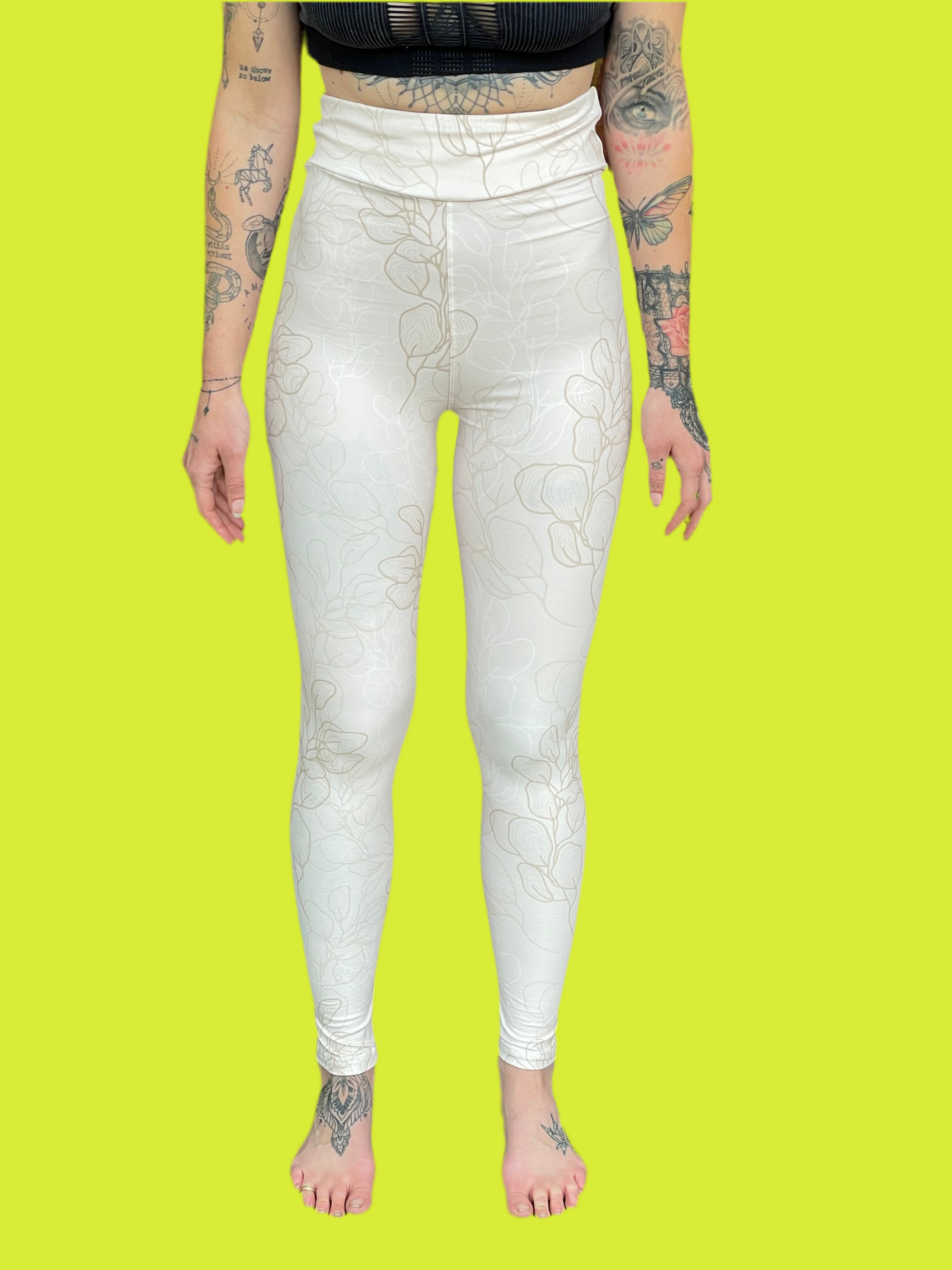 These beautiful, light-weight leggings are made from a polyester and spandex blend fabric. This makes them super comfy and perfect for yoga, gym or even for lounging around the house.
