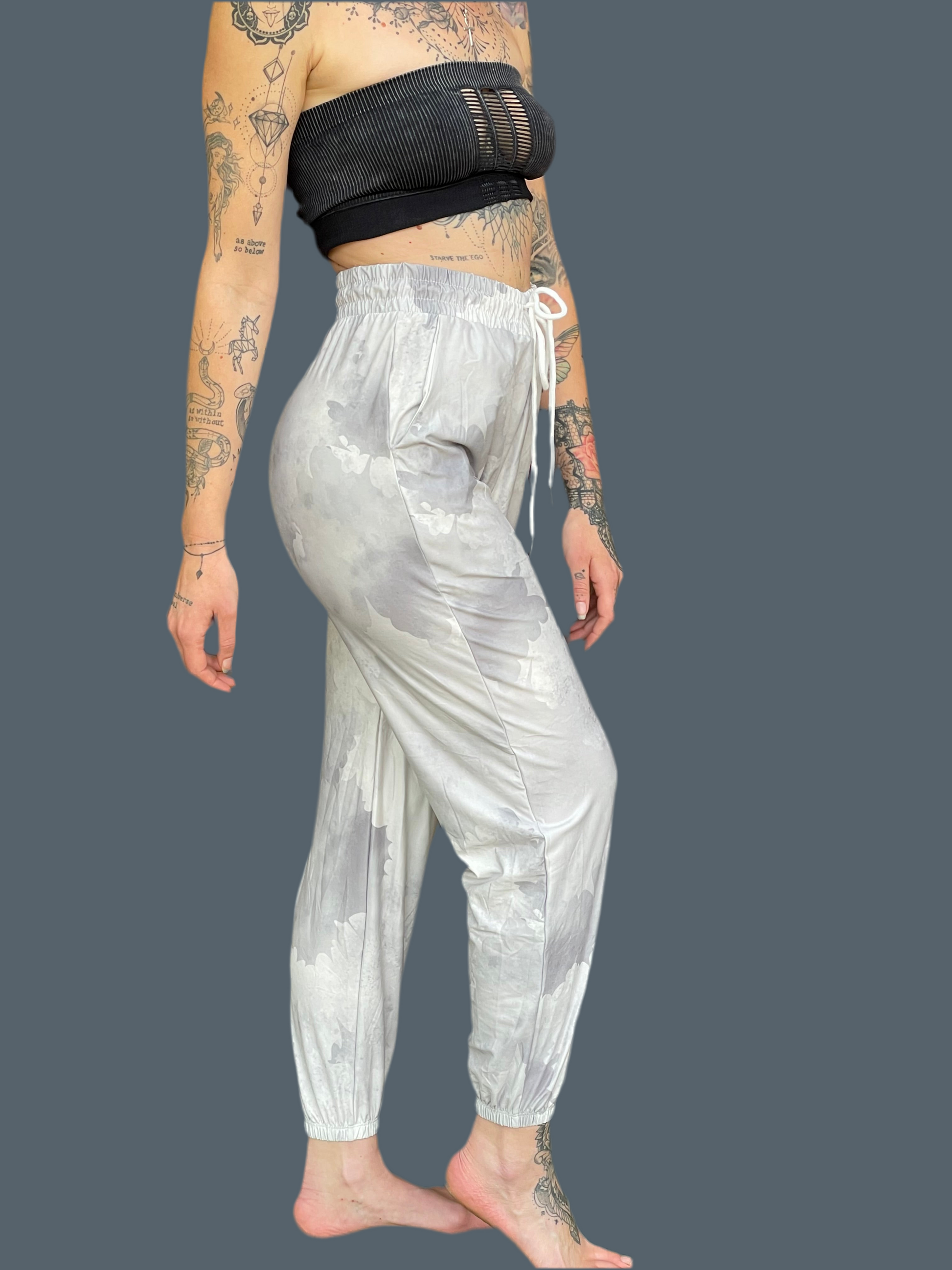 These beautiful, lightweight joggers are made from a polyester and spandex blend fabric.